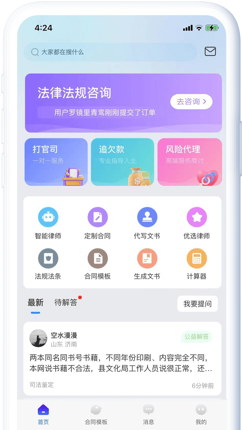 静问法律咨询是一款提供法律咨询,法律服务的一款咨询软件,由律师提供专业的法律咨询服务,为用户倾力打造出优质的法律咨询服务体验。